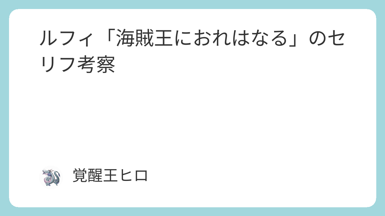 ワンピースのコミック1巻で主人公のルフィが「海賊王におれはなる!!!!」という決意のセリフがあるわけです、このセリフを考察していきます。